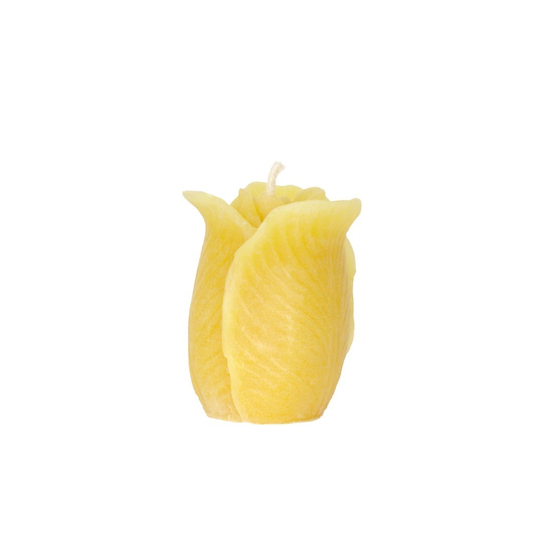 Detailreiche Kerze in Form einer Tulpenblüte aus 100% natürlichem Bienenwachs.